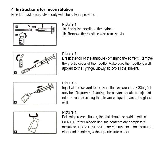 Amount to Inject: If you have used 1ml of water for mixing then an 100mcg dosage = 0.05ml